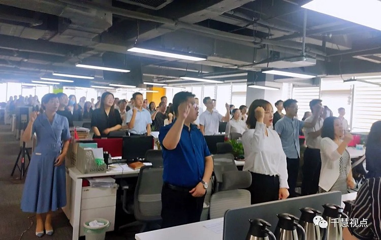 “千慧家人早上好”、“好”……異口同聲的回答調(diào)動(dòng)起大家的情緒,瞬間讓大家從個(gè)體凝聚在一起。因?yàn)橐咔?,這次千慧人年后以來首次在晨會(huì)中相聚;多年來,晨會(huì)已經(jīng)走進(jìn)所有千慧人的心坎,成為彼此間的一種習(xí)慣、一種默契。