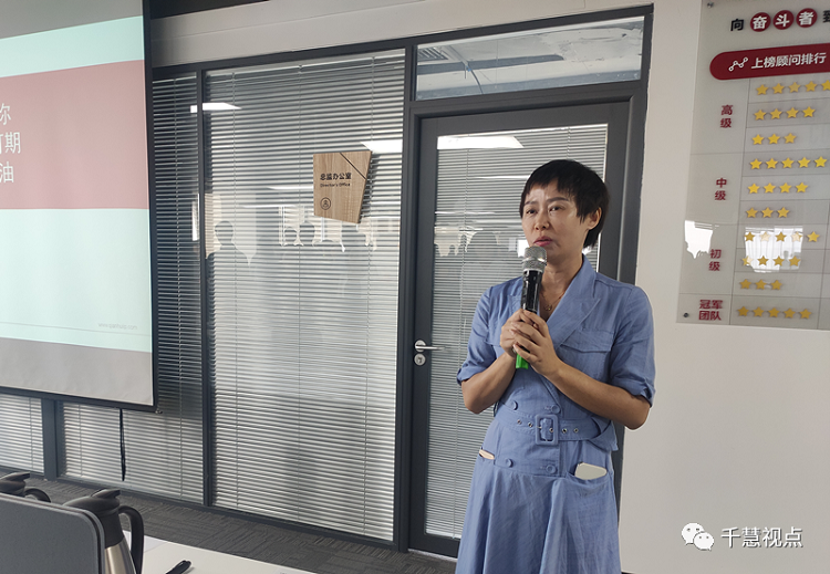 李俠董事長首先代表全體千慧家人對(duì)新人們的到來表示歡迎,希望新人們?cè)谇Щ勰_踏實(shí)地,做到有成長、有收獲、有未來。她表示,千慧文化不是掛在墻上的條文,而是融入到千慧人血液里的,潛意識(shí)地影響千慧人工作與生活的靈魂篇章,希望全體家人通過晨會(huì)切身感知千慧文化,做到躬身入局,正言正心正能量。