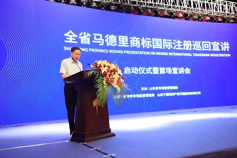 為進(jìn)一步加強(qiáng)品牌強(qiáng)省建設(shè),貫徹落實(shí)山東省政府辦公廳知識(shí)產(chǎn)權(quán)“春筍行動(dòng)”工作部署及國家知識(shí)產(chǎn)權(quán)局“知識(shí)產(chǎn)權(quán)服務(wù)萬里行”工作要求,切實(shí)提高為全省企業(yè)提供知識(shí)產(chǎn)權(quán)精準(zhǔn)服務(wù)的能力,更好地推進(jìn)全省馬德里商標(biāo)國際注冊(cè)與保護(hù)工作,提升企業(yè)品牌國際化運(yùn)營和商標(biāo)馬德里國際注冊(cè)保護(hù)水平。7月24日上午,由山東省市場監(jiān)督管理局主辦、濰坊市市市場監(jiān)督管理局承辦、山東千慧知識(shí)產(chǎn)權(quán)代理咨詢有限公司協(xié)辦的“山東省馬德里商標(biāo)國際注冊(cè)巡回宣講啟動(dòng)儀式暨首場宣講會(huì)”圓滿舉辦。