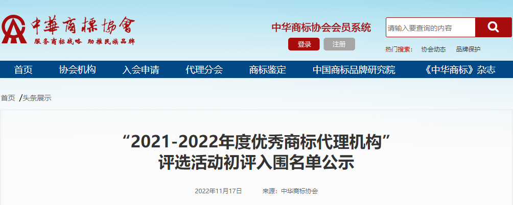 附件:“2021-2022年度優(yōu)秀商標代理機構”評選活動初評入圍名單
