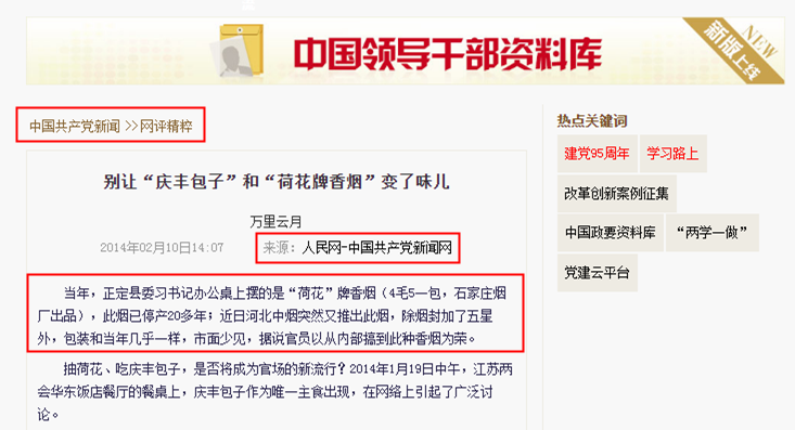 本案中,證據(jù)附件《別讓“慶豐包子”和“荷花牌香煙”變了味兒》為人民網(wǎng)-中國(guó)共產(chǎn)黨新聞網(wǎng)的新聞網(wǎng)頁(yè)。