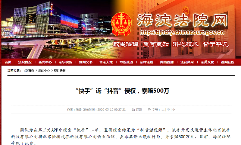 快手公司發(fā)現(xiàn)在第三方應(yīng)用商店“360手機(jī)助手”內(nèi)輸入“快手”二字,出現(xiàn)的搜索結(jié)果第一條并非“快手”產(chǎn)品,置頂搜索結(jié)果竟然為“抖音短視頻”APP,并且在應(yīng)用程序名稱(chēng)右側(cè)顯示有“推廣”標(biāo)識(shí),點(diǎn)擊該搜索結(jié)果即可完成“抖音短視頻”應(yīng)用程序的安裝及正常使用。經(jīng)應(yīng)用商店公示及“抖音短視頻”《用戶(hù)服務(wù)協(xié)議》約定,北京微播視界科技有限公司為“抖音短視頻”的開(kāi)發(fā)及運(yùn)營(yíng)主體。