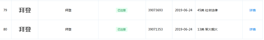 綜上,截止2020年11月8日,在拜登參選美國總統(tǒng)到大選成功期間,共有25件“拜登”商標成功注冊,一件“拜登”商標和一件“baideng”商標已初審公告。