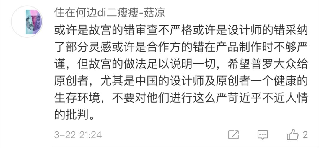 有網(wǎng)友呼吁,要多些寬容,給中國(guó)設(shè)計(jì)師及原創(chuàng)者創(chuàng)造健康的生存環(huán)境。
