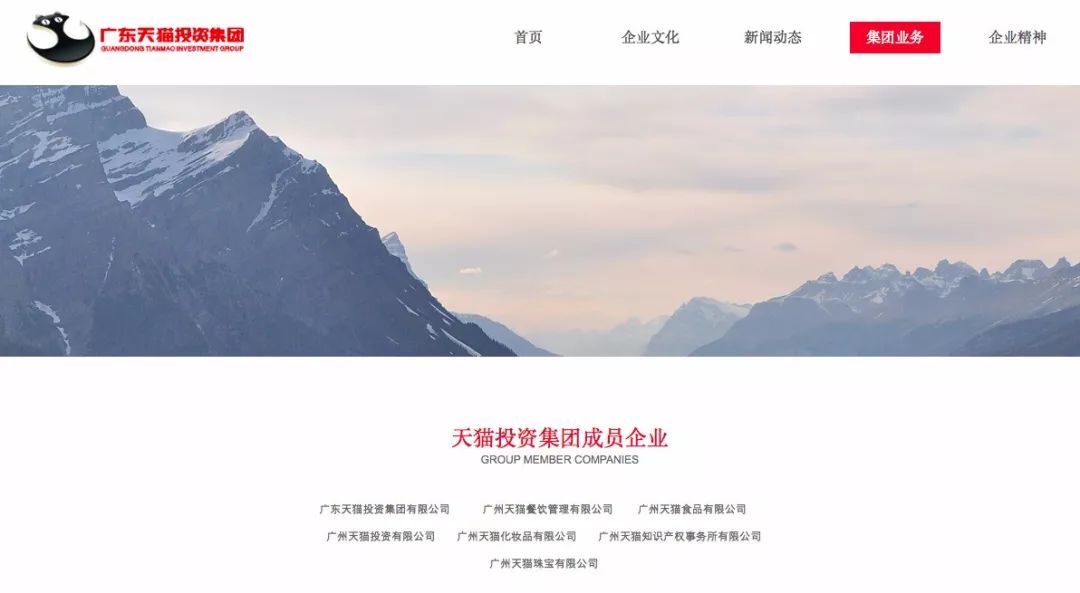 廣東天貓投資集團(tuán)網(wǎng)站頁面截圖