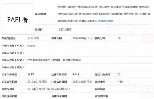 中國商標權(quán)的獲得必須履行商標注冊程序,而且實行申請在先原則。比起大佬們周密的商標注冊計劃,被稱為“2016第一網(wǎng)紅”的“Papi醬”(真名姜逸磊)在這方面則顯得不夠敏感。