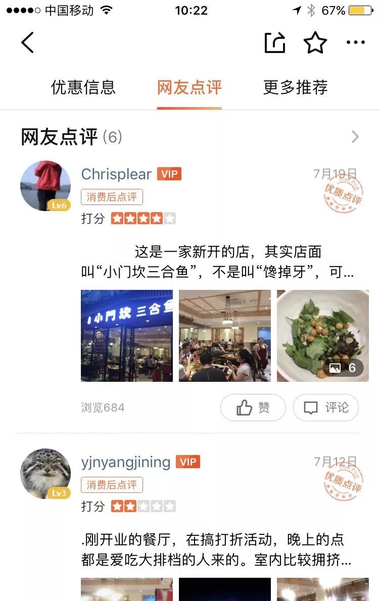 “修改昵稱1314”的網(wǎng)友也在大眾點評上表示,他去吃過這家店,該店老板還給他說跟小龍坎的“小門坎三合魚”是一家,但是感覺味道不對,看來是遭“騙”了。