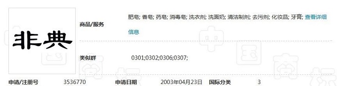 另一些“非典”商標類別主要申請在消毒皂、清潔劑、洗面奶等清潔用品上。