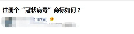 當然,這還不是全部。有些行業(yè)內人士此時就要疑問了,目前有關于新型冠狀病毒的相關商標情況如何?可能有些人看到這種疑問還會覺得不可思議,畢竟目前人們大都還無法平靜地面對“新型冠狀病毒肺炎”幾個字,抱有敵意才算是常態(tài)。不過據(jù)了解,還真有人已經萌生了這種想法: