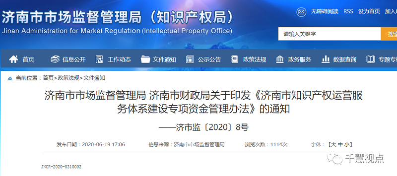 濟南市市場監(jiān)督管理局 濟南市財政局關于印發(fā)《濟南市知識產(chǎn)權運營服務體系建設專項資金管理辦法》的通知