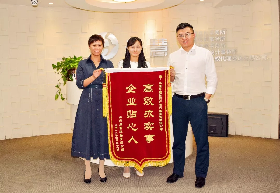 今天,山東啟智飲品有限公司岳總委托朋友送來了一面錦旗,頓時讓山東千慧知識產(chǎn)權(quán)代理咨詢有限公司的辦公室熠熠生輝。這面錦旗是送給誰的?期間又有什么特別的故事呢?